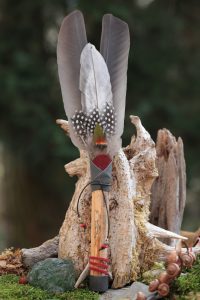 Entweder nach Vorbildern aus meinem Fundus oder nach eigenen Vorstellungen. Es stehen Federn von vielen besonderen Vogelarten zur Verfügung. Mithilfe des reichhaltigen Fundus von Schwemmhölzer, Holzarten, Leder, Fellen, Perlen, Steinen, Muscheln etc. gestalten wir daraus kraftvolle und sehr persönliche Kunstwerke.